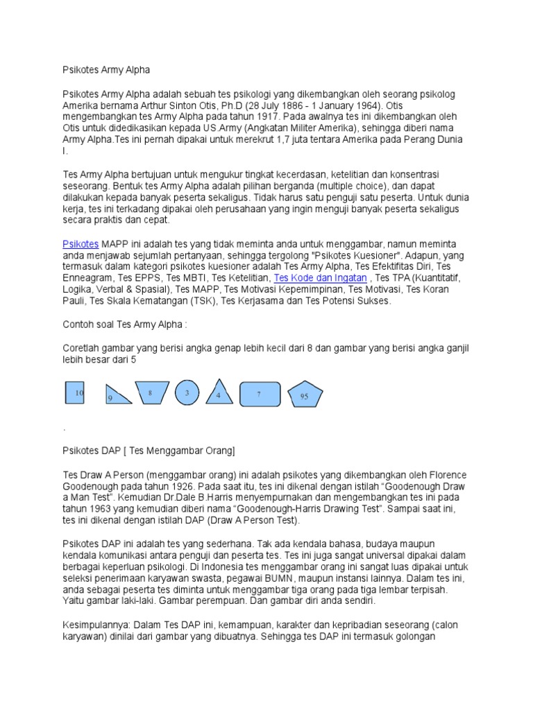 Tips sukses mengerjakan test kraeplin atau tes angka. Contoh soal psikotes tes psikotes merupakan salah satu tahapan seleksi kerja yang wajib anda ikuti ketika anda sedang melamar pekerjaan di sebuah perusahaan. Banyak orang yang takut ketika menghadapi pisikotes dikarenakan memang tes ini merupakan tes yang cukup sulit bagi sebagian orang. Silakan anda berlatih mengerjakan soal psikotes jenis ini untuk memberikan pengalaman pada diri anda sendiri. Download contoh soal psikotes 2019 matematika gambar polri bank karayawan deret angka pdf cpns sma online dan jawabannya beserta pembahasannya lengkap. Salam sobat myblog masih seputar psikotes nih kemarin saya telah membahas tentang contoh soal dan pembahasan tes asimetrik kali ini akan saya lanjutkan dengan tes koran bagi yang belum tahu tes koran adalah salah satu dari jenis soal psikotes yang mengharuskan peserta tes mengisi soal sesuai perintah dari pengawas tes.