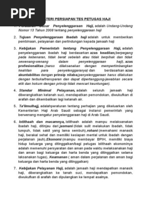 Banyak sekali orang yang menginginkan menjadi seorang petugas haji dan ataupun seorang calon petugas haji yang belum mengetahui materi apa saja yang diujikan dalam ujian petugas haji. Berikut ini akan saya sajikan kisi kisi soal tes petugas haji. Seleksi akan dilakukan secara berjenjang mulai dari kabupaten propinsi hingga kemenag pusat. Tes tertulis di tingkat kantor kementerian agama kabupatenkota pada tanggal 29 maret 2018. Tes potensi ppt yorie74. Pusat kesehatan haji.