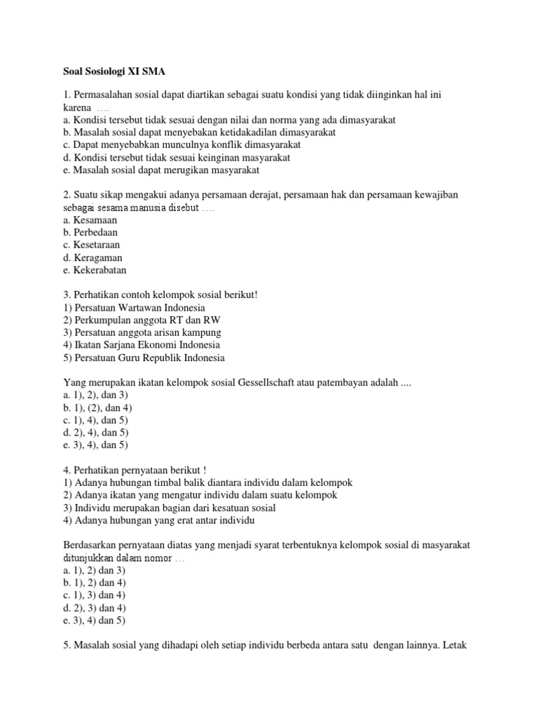 Diantara mata pelajaran ips seperti ekonomi geografi dan sosiologi rasanya mata pelajaran sosiologi lah yang menekankan banyak hafalan. Apabila perbuatan tersebut tidak dilakukan maka dianggap sebagai penyimpangan. Soal soal dalam materi sosiologi bisa menyangkut pada masalah sosial perubahan sosial globalisasi ataupun pada bentuk konflik sosial. Nah sudah sebanyak apa kamu belajar sosiologi untuk menghadapi un. Oleh karena itulah disarankan sebelum membuat soal dalam materi sosiologi penting bagi pembaca secara lengkap mengatui tentang objek kajian sosiologi dan contohnya salah satunya caranya ialah dengan membaca buku atau membaca materinya yang tersaji dalam. Latihan soal un sosiologi sma terbaru 2020 ini mencakup keseluruhan materi yang pernah sobat pelajari di 3 tahun terakhir masa indah sma itu.