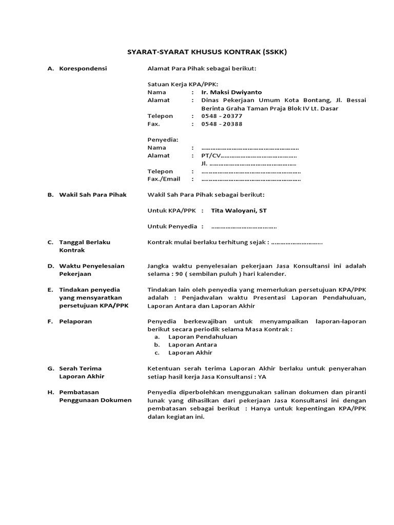 Contoh sskk jasa konsultansi. Contoh format dokumen pengadaan langsung barang adapun pengertian pengadaan langsung berdasarkan pasal 1 angka 32 perpres no542010 jo perpres no542012 adalah pengadaan barangjasa langsung kepada penyedia barangjasa. Academiaedu is a platform for academics to share research papers. Kali ini saya membuat format kontrak yang menggunakan surat perjanjian berdasarkan permen pupr more. Format kontrak pekerjaan konstruksi saat ini mengacu pada peraturan menteri pupr nomor 07prtm2019 tentang standar dan pedoman pengadaan jasa konstruksi melalui penyedia. 7 tahun 2019 perlu pengaturan mengenai format kontrak pengadaan pekerjaan konstruksi dan jasa konsultansi yang jelas dan komprehensif sehingga dapat menjadi kontrak yang sesuai dengan kebutuhan dan tepat sasaran. Contoh bentuk laporan qc quality control contoh bentuk laporan qc untuk kontraktor.