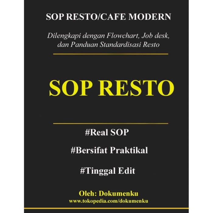 Penjelasan prosedur operasional standar untuk pembelian dan makan di tempat saya sajikan di contoh sop penerimaaan kas resto di bagian akhir topik ini. Ebook standart operating procedure produk baru dari mlg management berupa ebook bagaimana cara membuat bisnis kuliner anda sukses dan berkembang. Form operasional outlet cara interview karyawan memilih karyawan yang tepat draf kontrak kerja karyawan marketing plan basic bar. Standar operasional prosedur sop merupakan dokumen yang berkaitan dengan standar prosedur yang dilakukan secara kronologis untuk dapat menyelesaikan suatu pekerjaan yang bertujuan untuk memperoleh hasil kerja yang lebih efektif dan efisien dengan biaya yang serendah rendahnya. Jenis format standar operasional prosedur video ini dapat digunakan untuk menjelaskan langkah langkah kerja bagi mereka yang lebih paham dengan melihat dari pada membaca. Apabila anda tertarik untuk membuka kafe 24 jam anda hanya perlu merubah sedikit dari sop di atas.