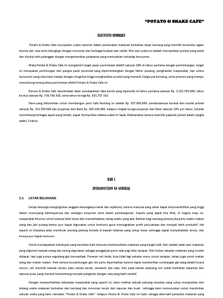 Proposal Studi Kelayakan Bisnis Usaha Cafe Pdf Free Download