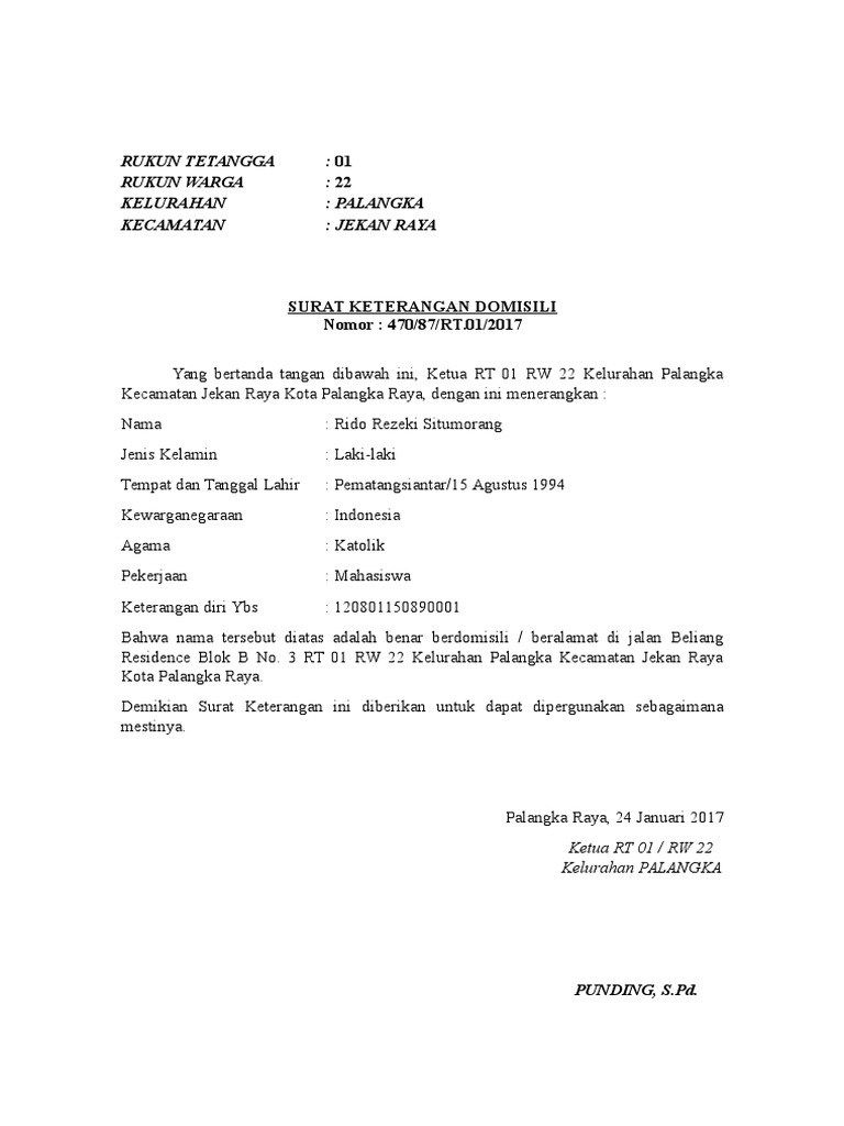 Contoh surat domisili rt. Nama ketua rt baca juga. Surat keterangan domisili ini biasanya dikeluarkan oleh pihak kelurahan mulai dari pejabat terendah yaitu rt hingga kepala desa. Sebenarnya jenis surat keterangan ini tidak di atur dalam undang undang. Contoh surat domisili bagi setiap warga pendatang yang belum memiliki sebuah kartu tanda penduduk ktp di daerah setempat dia akan menetap sebaiknya segera membuat surat keterangan domisili sementara dari ketua rukun tetangga rt. Download contoh surat perjanjian hutang piutang. Surat pengantar rt akan ditandatangani oleh ketua rt dan diberikan cap dan nomer suratnya kemudian surat pengantar ini dibawa ke kantor kelurahan kemudian dari kelurahan maka kita akan mendapat surat keterangan dari lurah kemudian kita bawa kekantor kecamatan untuk proses pembuatan ktp.
