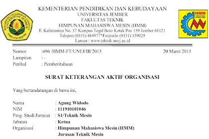 Contoh surat keterangan aktif organisasi. Sebagai contoh surat keterangan diterima di perguruan tinggi atau surat keterangan aktif sebagai pegawai di sebuah dinas. Surat keterangan aktif ini biasanya digunakan untuk kelengkapan persyaratan mengajukan permohonan beasiswa. Isi surat keterangan dapat beragam tergantung maksud dan tujuan dibuatnya. Memang sangat perlu sekali buat kita sebagai anggota organisasi harus mempunyai surat aktif supaya kita bisa memberikan kalau di organisasi tersebut kita memang sebagai anggota pelaksana dan tidak gado gado saja. Contoh surat keterangan aktif organisasi bem. Surat keterangan aktif dalam organisasi ini yaitu sebuah surat yang menerangkan keterangan bahwa seseorang aktif dalam suatu kegiatan tertentu baik itu dalam organisasi pendidikan maupun organisasi dalam suatu daerah tertentu atau organisasi lainnya.