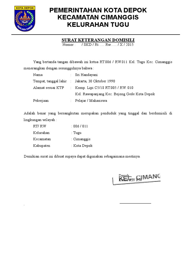 If you dont know where it is dont worry. Getting the surat domisili. 15 contoh surat keterangan domisili yang baik dan benar dalam berbagai hal dan urusan seringkali kita membutuhkan berbagai jenis surat yang resmi yang dikeluarkan oleh aparat dan pejabat tertentu. The kelurahan or kantor desa if you are in a rural area.