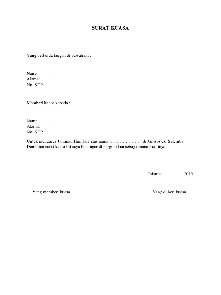 Contoh surat kuasa bpjs. Solo 09 maret 1943 alamat. Pengurusan kuasa untuk bpjs ketenagakerjaan juga bisa dilakukan melalui perwakilan. Scribd is the worlds largest social reading and publishing site. S u r a t k u a s a. Paklaring merupakan sebuah surat keterangan yang isinya berupa pernyataan bahwa seseorang pernah bekerja pada sebuah lembaga dengan posisi atau jabatan dan jangka waktu tertentu. Dengan membaca artikel ini kamu akan bisa membuat surat kuasamu sendiri untuk berbagai keperluan.