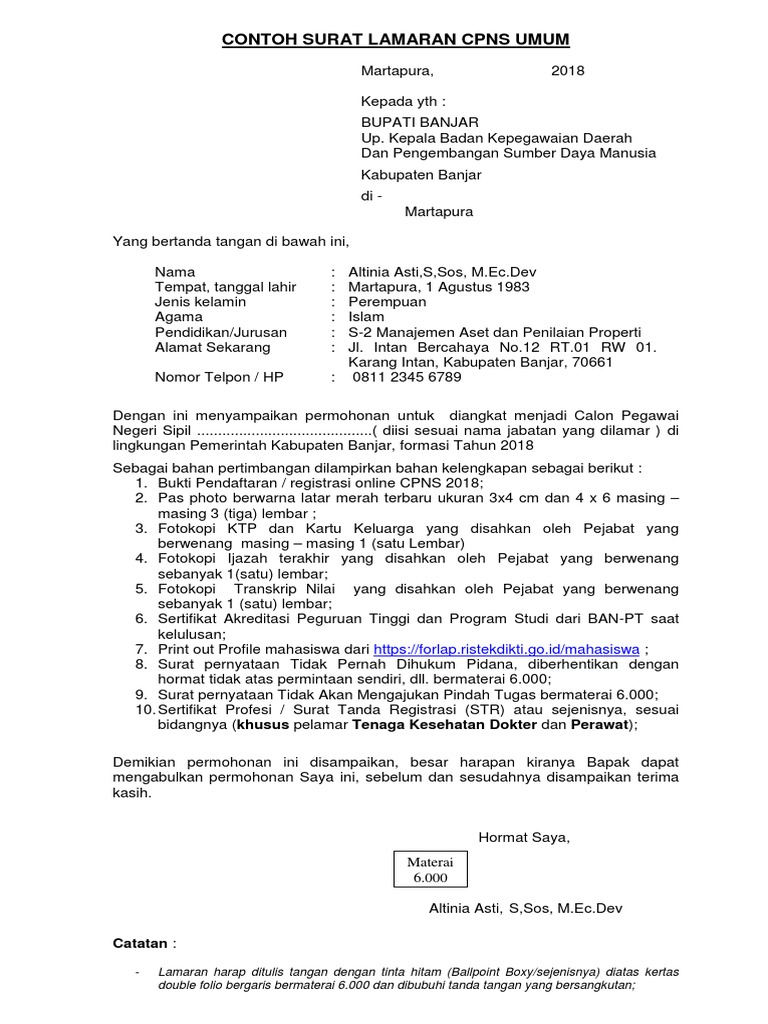 Berdasarkan contoh surat lamaran cpns 2019 yang dibagikan oleh beberapa instansi pusat dan daerah rata rata surat itu memuat beberapa informasi di antaranya yaitu nama pelamar jenis kelamin jenjang pendidikan. Yang bertanda tangan di bawah ini nama.