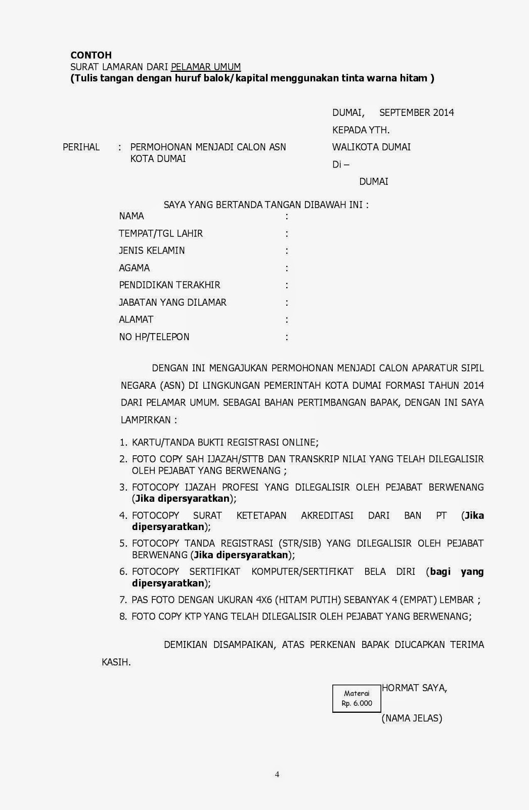Membuat surat pernyataan dalam melamar cpns bagi yang belum pernah memang sedikit susah. Selain itu berikut ini daftar link format surat lamaran cpns dan berkas lain yang sudah disediakan tiga instansi tersebut. Sebenarnya calon peserta seleksi cpns juga bisa mengunduh melalui images for contoh surat lamaran cpns 2018. Cpns kemenkumham 2019 kemenkumham membuka lowongan cpns 2019 sebanyak 4598 formasi. Contoh surat lamaran kerja cpns terbaru 2014 buat anda yang ingin melamar kerja di cpns maka membuat surat lamaran tidak boleh asal buat saja dan ada setruktur yang harus anda ketahui juga maka dengan ini kami blog contoh surat dan proposal memberikan info ini buat anda semua supaya anda bisa di terima lamaran kerja cpns anda nantinya. Sedangkan untuk contoh surat lamaran cpns umum anda hanya perlu mengganti beberapa kata dan kop surat.