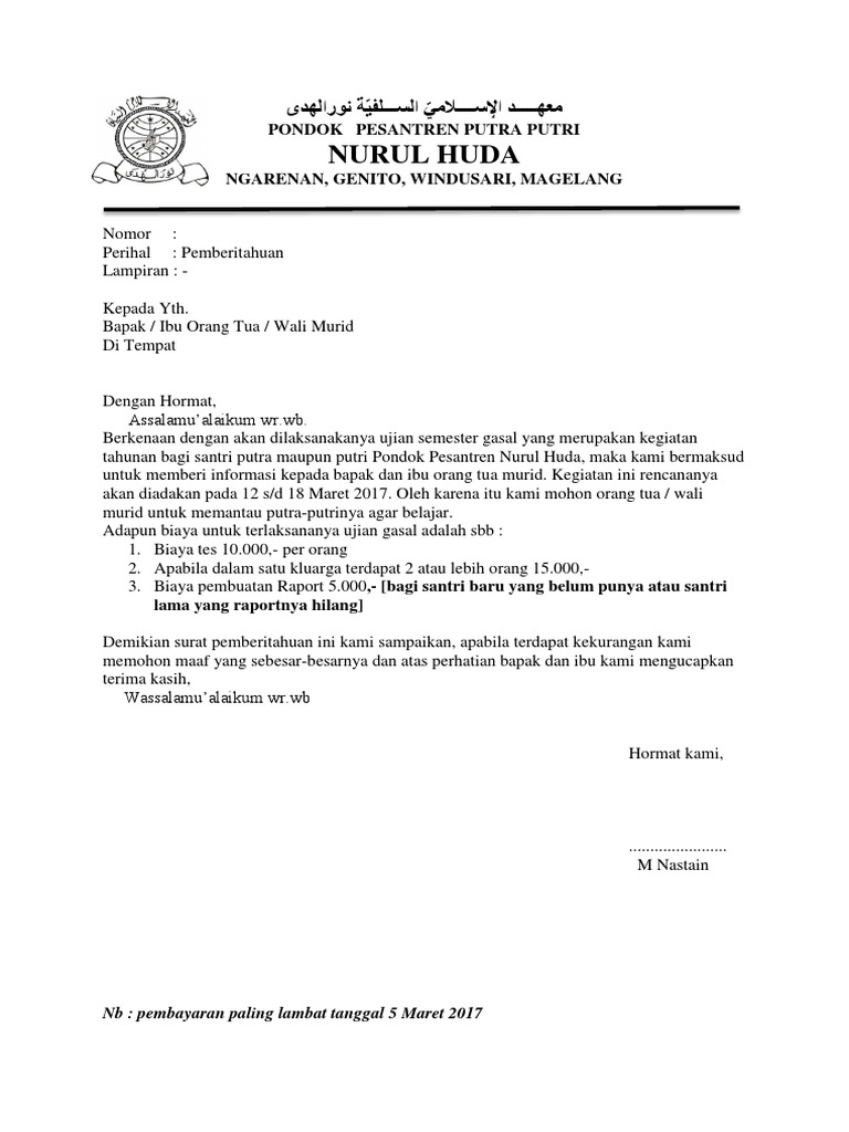 Adapun poin dari isi surat yang harus diperhatikan yaitu pemberitahuan pengiriman pembayaran catumkan jumlah uang yang dibayarkan jelaskan cara pembayaran dan lampiran bukti pembayaran. Contoh surat pemberitahuan pembayaran sekolah untuk wali murid surat pemberitahuan sekolah digunakan sebagai sarana informasi tertulis dari pihak sekolah kepada pihak wali murid atau orangtua. Surat berikut ini adalah contoh contoh surat pemberitahuan yang dapat di. Hormat kami sam ratulangi samosir staff administrasi baca juga. Selain itu surat pemberitahuan juga bisa saja berisi kegiatan. Jika kita telah melewati tanggal jatuh tempo pembayaran maka kita akan menerima berupa surat penagihan pembayaran.