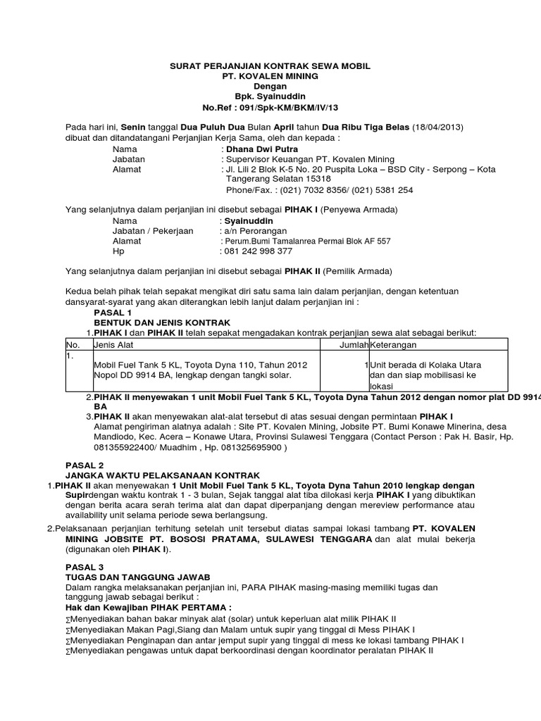Herton setiawan alamat. Jadi surat perjanjian sewa menyewa ini tidak hanya untuk rental mobil harian atau bulanan saja.