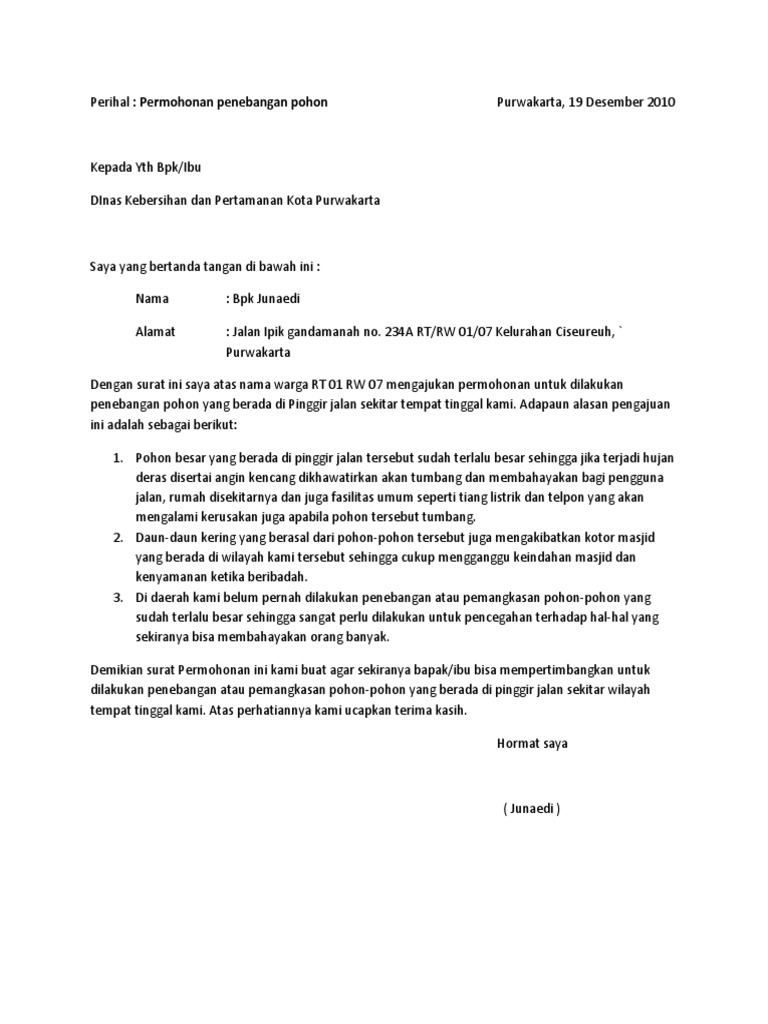 Scribd is the worlds largest social reading and publishing site. Di wilayah saya ada sebuah pohon tua di pinggir jalan yang bisa membahayakan pengguna jalan. Contoh surat permohonan sebuah permintaan yang secara halus dapat dilakukan melalui sebuah surat permohonan yang dikirimkan atau diberikan kepada seseorang instansi aparat masyarakat dan lainnya baik mewakili pribadi perseorangan ataupun kelompok. Dengan surat ini saya atas nama warga rt 01 rw 07 mengajukan permohonan untuk dilakukan penebangan pohon yang berada di pinggir jalan sekitar tempat tinggal kami. Bagaimana prosedurnya izin untuk penebangan tersebut. Admin blog dapatkan contoh 2019 juga mengumpulkan gambar gambar lainnya terkait contoh surat permohonan bibit ke dinas pertanian doc dibawah ini.