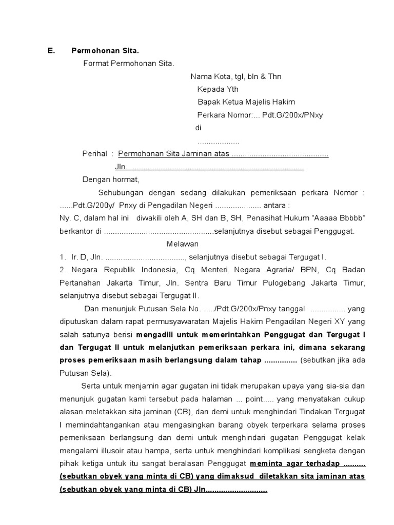 Demikian kami sampaikan atas diterimanya permohonan sita jaminan ini diucapkan terima kasih. Contoh format permohonan sita jaminan perdata format permohonan sita.