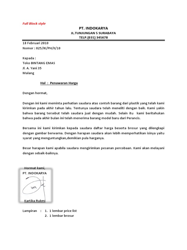 Contoh surat pemesanan barang surat pemesanan barang merupakan salah satu bentuk surat resmi yang diterbitkan oleh pembeli yang berisi tentang permintaan pembelian suatu barang tertentu yang ditujukan kepada pihak lainnya yang menjual barang baik itu perorangan maupun mewakili perusahaan. Contoh surat full block style kebutuhan surat menyurat di era sekarang ini memang sangatlah penting baik itu surat dalam bentuk lembaran kertas maupun surat dalam bentuk digital. Surat pesanan barang ini termasuk ke dalam surat resmi dan seringkali dipergunakan oleh setiap perusahaan. Adapun surat masih kerap digunakan sebagai alat komunikasi secara formal antar pihak yang berkepentingan selain itu dengan dibuatnya sebuah surat pastinya memiliki tujuan tertentu dan bisa dikatakan dengan. Surat yang juga disebut sebagai surat bentuk lurus ini merupakan kombinasi dari bentuk surat full block style dan semi block style. Ada banyak jenis surat bentuk setengah lurus yang dipergunakan seperti contoh surat semi block style dalam bahasa inggris surat undangan semi block style surat pesanan bentuk semi block style dan lain sebagainya.