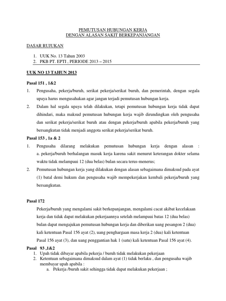 Contoh surat phk bagi para karyawan tentu tak asing mendengar surat pemutusan hubungan kerja phk. Pekerjaburuh yang mangkir selama 5 lima hari kerja atau lebih berturut turut tanpa keterangan secara tertulis yang dilengkapi dengan bukti yang sah dan telah dipanggil oleh pengusaha 2 dua kali secara patut dan tertulis dapat diputus hubungan kerjanya karena dikualifikasikan mengundurkan diri. Pasal 168 ayat 1 uu 132003 telah menggariskan bahwa pekerja yang mangkir dapat diputus. 3 rumusan perhitungan kompensasi pemutusan hubungan kerja. Surat pemutusan hubungan kerja ini merupakan surat yang dikeluarkan oleh perusahaan atau instansi kepada seorang karyawannya yang bertujuan untuk mengakhiri kerja sama antara pihak perusahaan atau instansi dengan orang yang. Apabila pekerja mangkir selama 5 hari kerja atau lebih secara berurutan tanpa keterangan tertulis yang dilengkapi dengan bukti yang sah dan telah dipanggil oleh perusahaan sebanyak 2 kali secara tertulis maka perusahaan dapat melakukan pemutusan hubungan kerja dengannya karena dianggap mengundurkan diri kepada pekerja diberikan uang pisah sesuai peraturan perusahaan pasal 60.