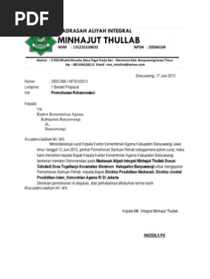 Permohonan surat rekomendasi ijin keramaian kegiatan mimbar keagamaan. Rekomendasi kemenag jamaah umrah dan haji khusus saat ini harus melakukan beberapa prosedur tambahan untuk bisa berangkat menuju tanah suciprosedur yang dimaksud adalah meminta surat rekomendasi dari kantor kementerian agama kabupatenkota. Hal ini dikarenakan banyak yang menyalahgunakan pasport bilangnya untuk umroh ternyata malah jadi tki. Berikut kami lampirkan contoh pada poin 2 surat permohonan dari ybs. Untuk keperluan membuat paspor umroh sekarang diperlukan surat rekomendasi dari kemenag. 15 contoh surat permohonan rekomendasi paling lengkap ada banyak contoh surat yang masih dipergunakan sekarang ini baik itu untuk kepentingan pribadi maupun untuk kepentingan kelompok.