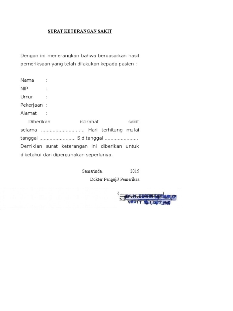Contoh surat keterangan sakit dari dokter sebuah surat keterangan sakit sangatlah penting bagi seorang karyawan yang bekerja di perusahaan swasta maupun pegawai negeri. Jika anda sedang sakit dan tidak bisa masuk kerja maka anda akan diminta perusahaan untuk melampirkan surat keterangan sakit dari dokter. Surat izin sakit mirip surat keterangan dokter diantara kita para pekerja atau karyawan yang bekerja pada instansi pemerintahan maupun swasta pasti memiliki sebuah aturan dimana bagi setiap pegawai yang mangkir atau tidak bekerja absen tanpa pemberitahuan akan diberikan sanksi sesuai dengan aturan yang berlaku di perusahaan tersebut. 15 contoh surat dokter untuk berbagai keperluan dalam berbagai hal dan urusan surat keterangan dari dokter sangatlah diperlukan. Biasanya di surat tersebut dituliskan bahwa anda diharuskan istirahat bed rest selama 2 3 hari lamanya. Contoh surat dokter surat keterangan sakit dari dokter blog contoh surat dan proposal akan menyampaikan kepada anda supaya anda bisa mengetahui juga untuk surat dokter atau surat keterangan sakit dari dokter sehingga anda bisa mengetahuinya juga.