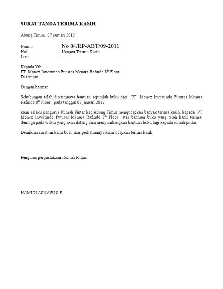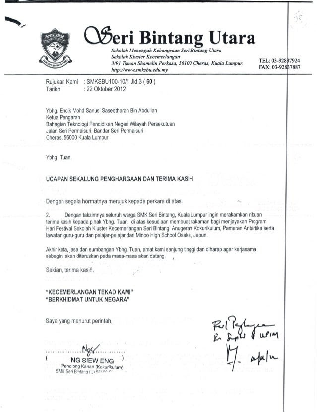 Sedangkan untuk anda yang menjadi bos maka formatnya hampir sama saja. Ini akan membuat anda tampak tidak profesional dan bahkan sangat menyinggung. Selain mengajarkan ilmu yang bermanfaat mereka juga bertugas mendidik para siswanya untuk menjadi pribadi yang lebih baik. Sehubungan dengan itu kami merakamkan ucapan setinggi tinggi penghargaan dan terima kasih atas sumbangan tuan sebagai penceramah bagi kursus pengurusan jenazah anjuran bersama persatuan pendidikan islam dan pasukan briged bakti smk putri saadong yang telah diadakan pada butiran berikut. Contoh surat ucapan terima kasih dalam konteks kehidupan ketika mendapatkan bantuan atau kebaikan dari orang lain maka sudah selayaknya untuk mengucapkan terima kasih. Surat ucapan terima kasih ini tidak hanya dapat dibuat atas nama pribadi namun juga dapat mengatasnamakan sebuah kelompok instansi atau bahkan sebuah perusahaan.