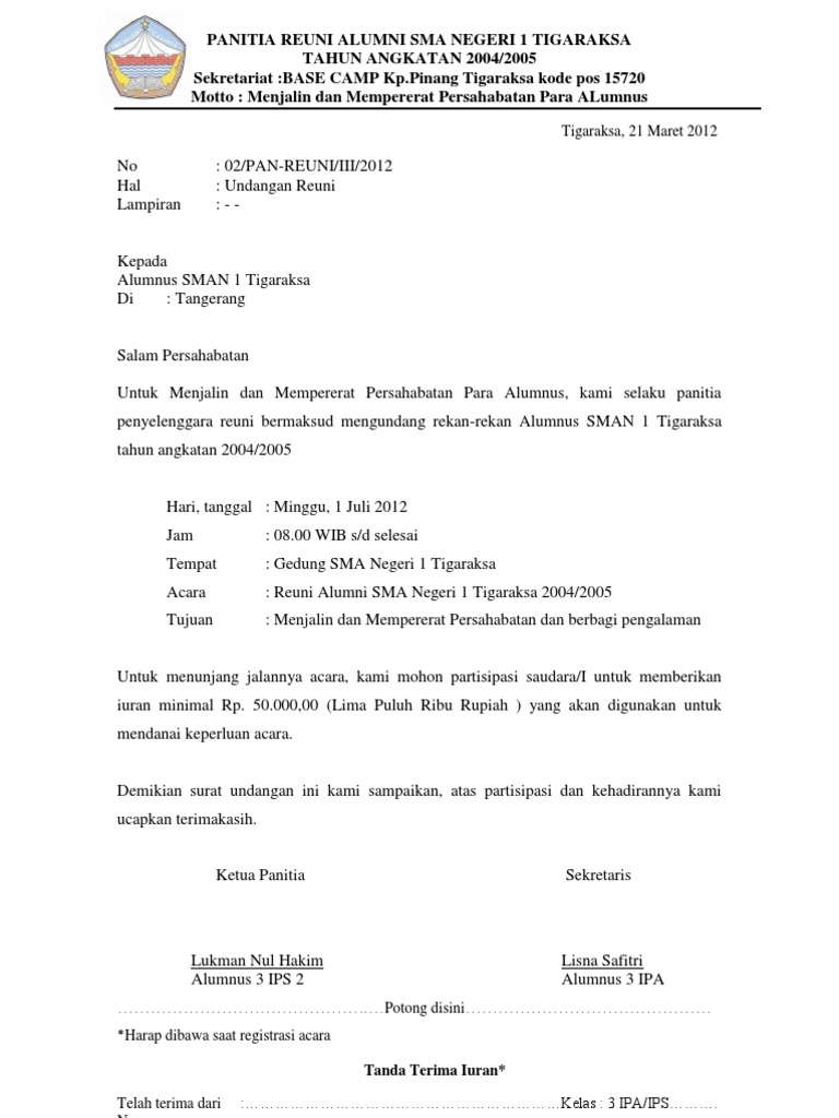 Untuk membuat surat undangan formal reuni tidak ada berbeda dengan surat surat undangan pada umumnya. Contoh surat undangan apabila anda ingin mengadakan suatu kegiatan dan ingin mengundang banyak pihak anda pasti membutuhkan surat undangan. 15 contoh surat resmi sekolah yang baik dan benar setiap komunikasi sekolah yang bersifat resmi biasanya akan menggunakan surat sebagai alat komunikasinya. Contoh surat undangan formal reuni reuni adalah acara pertemuan yang diadakan untuk ber silaturahmi atau bertemu kembali setelah lulus dari sebuah sekolah atau akademi tertentu. Maka dari itu surat dinas sekolah disebut dengan salah satu contoh surat resmi. Berikut beberapa contoh surat undangan sebagai panduan untuk anda.