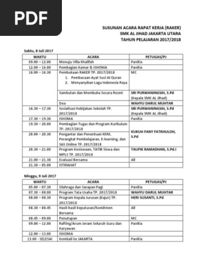 Contoh susunan acara rapat kerja. Herawati april 21 2015 at 843 pm. Proposal raker mts jis 2012. Pembawaan dengan formal atau santai bisa kamu kondisikan sendiri menurut siapa saja yang hadir pada saat rapat berlangsung. Kadang kala suatu rapat tidak selalu tepat dan terasa membosankan. Teksnaskah susunan mcpembawa acara. Kamu juga bisa memodifikasi susunan acara kerja sesuai dengan situasi dan kondisi acara rapat itu sendiri.
