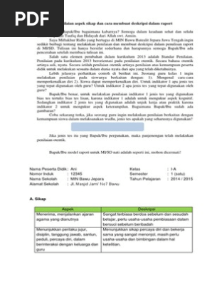 Pdf Contoh Deskripsi Raport Sd Kurikulum 2013 Kelas Iv