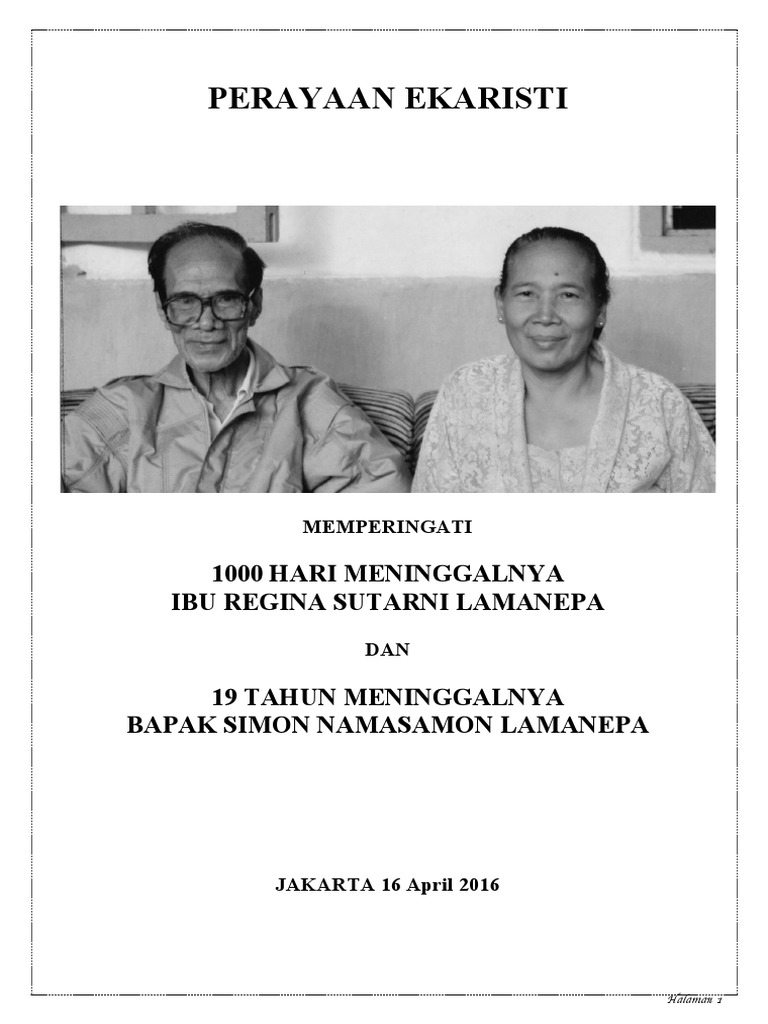 Ibadat arwah 100 hari 1. Misa arwah 9 juni 2012 mengenang 100 hari wafatnya istri mama eyang putri terkasih. Dalam nama bapa dan putra. Chatarina rianawati part 01 part 02. Dengan pengantaraan kristus tuhan kamimisa arwah 1000 hari wafatnya bp ac kusmardiyo halaman 5. Pada hari liturgis apa pun misa arwah boleh diadakan kecuali pada hari hari raya wajib hari kamis dalam pekan suci trihari suci paskah hari hari minggu dalam masa adven prapaskah dan paskah pumr 380.