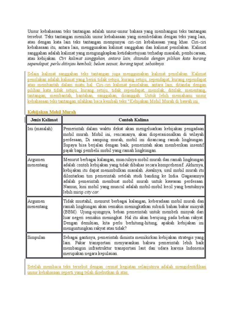 Struktur Dan Unsur Kebahasaan Teks Tantangan