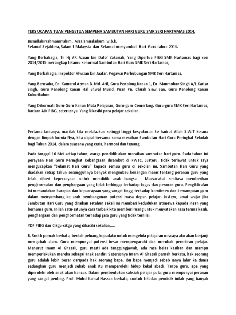 Contoh ucapan hari guru. Ucapan hari guru terima kasih kepada tuan pengerusi majlis. Selamat hari guru nasional 9. Ucapan selamat hari guru untuk pacar yang profesinya guru apalah arti dari kesuksesan yang diperoleh para anak didikmu apalah arti mereka tanpa kehadiran darimu. Jasa guru guru demi memakmurkan murid dan memajukan sekolah amat dihargai. Salam sejahtera saya ucapkan kepada tuan guru besarguru penolong kananguru guru dan rakan sekaliansaya sebagai wakil muridingin mengucapkan selamat menyambut hari guru kepada semua guru di sekolah ini. Karena para pahlawan tersebut akan terus tidak memiliki tanda jasa kecuali kita menunjukannya.