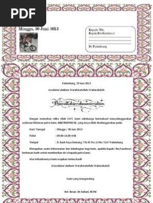 Surat undangan dapat berupa surat resmi maupun tidak resmi. Insya allah akan kami selenggarakan pada. Dengan memohon rahmat dan ridho allah swt kami sekeluarga mengharap kehadiran bapak saudara untuk memberikan bantuan doa restu pada acara. Artikel seputar contoh undangan khitanan islami barangkali amat dibutuhkan oleh sebagian manusia. Informasi undangan yang kami bagikan semoga menjadi informasi terbaik dan bisa benrmanfaat untuk semua khususnya informasi tentang contoh undangan khitanan islami terbaru 2020 yang semuanya kami kumpulkan dengan serapih mungkin. Mohon maaf apabila banyak kesalahan dalam penulisan artikel atau informasi tersebut yang ada kaitannya dengan format.