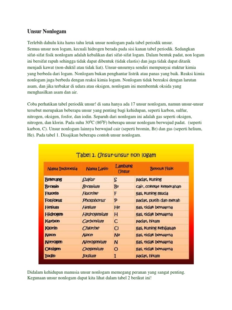 Sifat Unsur Non Logam Dan Kegunaannya Kimia Usaha321 Net