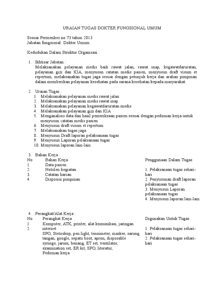Uraian Tugas Jabatan Job Description Dan Profil Tugas
