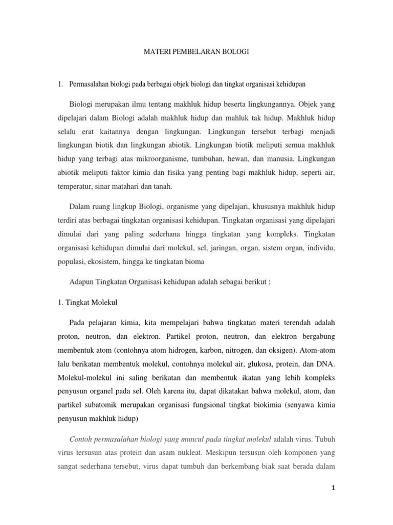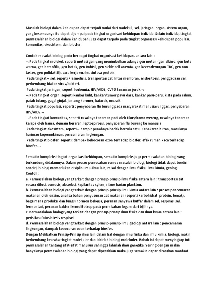 Objek dan contoh permasalahan biologi a. Karena manusia sejatinya adalah makhluk lemah yang tersusun atas sel sel jaringan dan seterusnya.